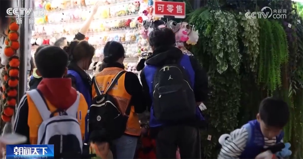走进市场,五年级学生闵姝扬和小伙伴立刻被琳琅满目的小商品吸引。经过一番比价,她入手了一款单价5元的“柿柿如意”毛绒挂件,为后续销售留足了资金。同样读五年级的陈胤豪则更有商业意识,得知每个挂件进货价3元后,他马上和好友凑钱批量购买。