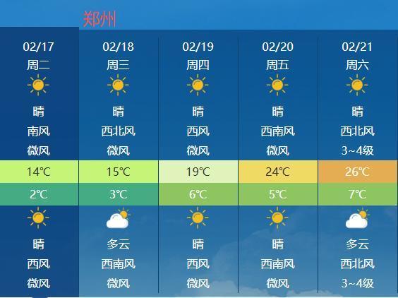 未来三天天气预报来源:河南省气象台2026年2月17日12时预报今天下午到明天,全省晴天间多云,有轻到中度霾,短时重度霾。今夜到明晨,中南部部分县(市、区)有雾。