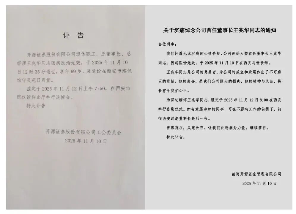 11月10日,开源证券和前海开源基金传来了金融业的一则悲讯:行业老将王兆华因病医治无效,与世长辞,享年六十九岁,追悼会于11月12日举行。王兆华的名字,与两家机构的历史紧密交织。他不仅是开源证券原董事长、总经理,推动过公司业务发展和管理创新;也曾担任前海开源创始人、首任董事长、党委书记,带领这家公司从零起步,发展成为管理规模超千亿的公募基金公司。