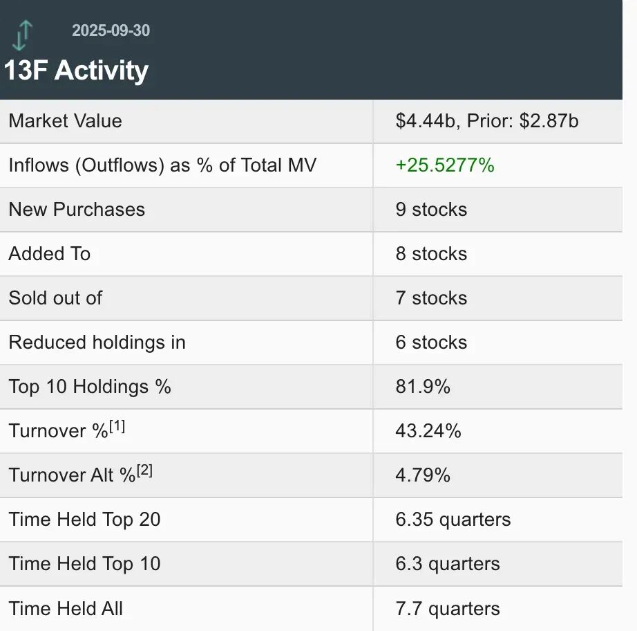 私募巨头景林资产海外主体景林资产管理香港有限公司(以下简称景林香港公司),近日向美国证券交易委员会(SEC)提交了截至2025年三季度末的美股持仓数据。根据13F文件,截至2025年9月30日,景林香港公司三季度末在美股市场持有30只证券,合计持仓总市值为44.41亿美元,较二季度末的28.74亿美元大幅增长54.52%。